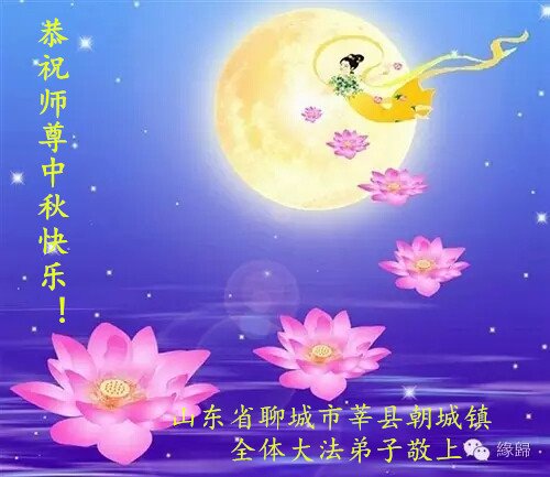 山东省聊城市莘县朝城镇老年大法弟子敬上 山东省烟台市招远市大法弟子恭祝师父中秋快乐!