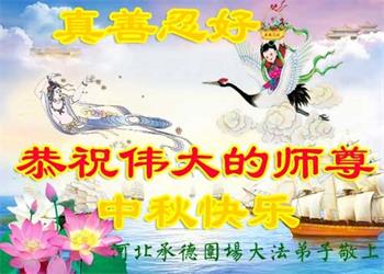 河北承德大法弟子恭祝慈悲伟大的师尊中秋快乐!弟子一定要互相配合,做好证实大法的事。多救人。 河北承德大法弟子恭祝慈悲伟大的师尊中秋快乐!