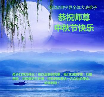 和身在大陆及冤狱的家人同修一起谢谢师父的慈悲救度,祝愿师尊中秋快乐! 弟子还有做的不足的地方,希望做得更好。谢谢师父的呵护,谢谢师父! 河北省沧州市肃宁县全体大法弟子恭祝师尊中秋节快乐!