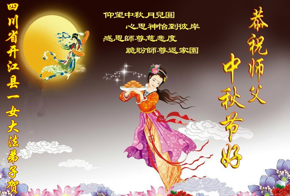中秋佳节到 恭祝师尊好 法徒做好三件事 惟愿师尊笑 四川省遂宁安居大法弟子恭祝师尊中秋快乐!