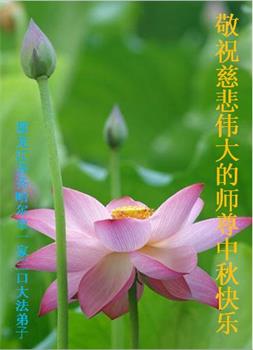 想念的师父您好!中秋佳节临近,弟子在此借助明慧网转去对师父的一片赤子之情。弟子一再忏悔是一个不合格的弟子,但是我会努力,我会加倍努力的,我不会辜负师父的殷殷期待,做好一个大法弟子应尽的义务,我会听师父的话,做好三件事。 辽宁鞍山市高新区三名大法弟子恭祝慈悲伟大的师尊中秋节快乐!