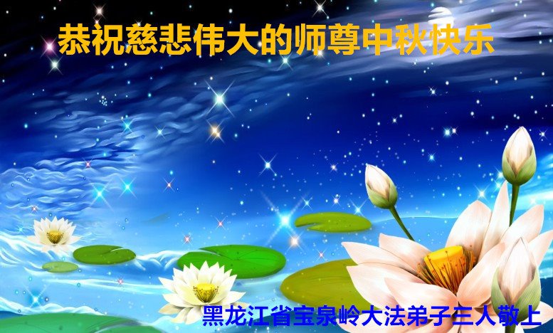 黑龙江省宝泉岭大法弟子三人恭祝慈悲伟大的师尊中秋快乐!弟子感谢师尊慈悲救度,叩谢师恩!