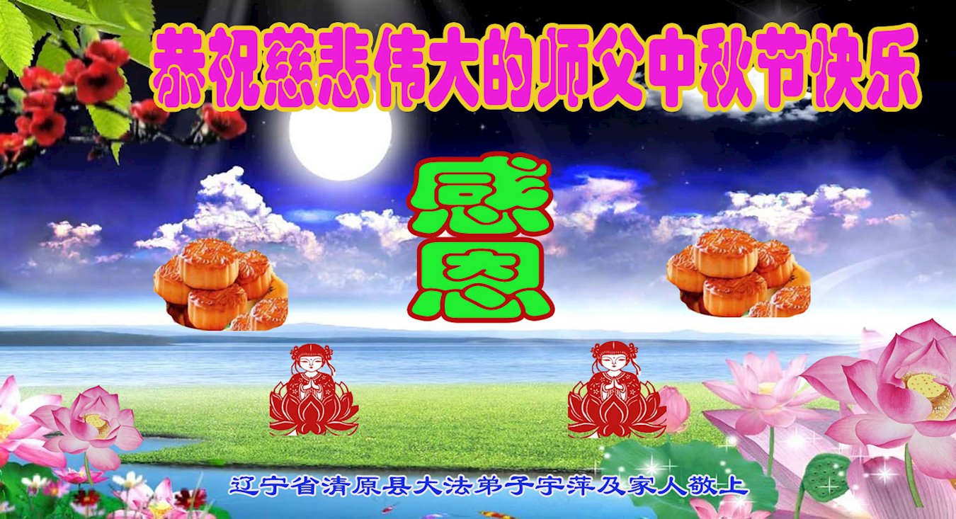 弟子们叩拜恩师慈悲苦度,听师父的话,共同精進,修己救人完成大愿,紧跟师父的正法進程,让师父多一份欣慰,少一份操劳。 辽宁鞍山大法弟子恭祝师父中秋节快乐!