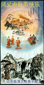 师父的大恩大德我永远不会忘记!我一定谨记师父的教诲,时时用“真、善、忍”和“向内找”的标准严格要求自己。感谢师父的慈悲苦呵护,我才能平稳的走到今天。弟子唯有修好自己,做好“三件事”才能不辜负师父您的殷切期望,圆满随师还。合十 山东泰安大法弟子恭祝慈悲伟大的师尊中秋佳节快乐!
