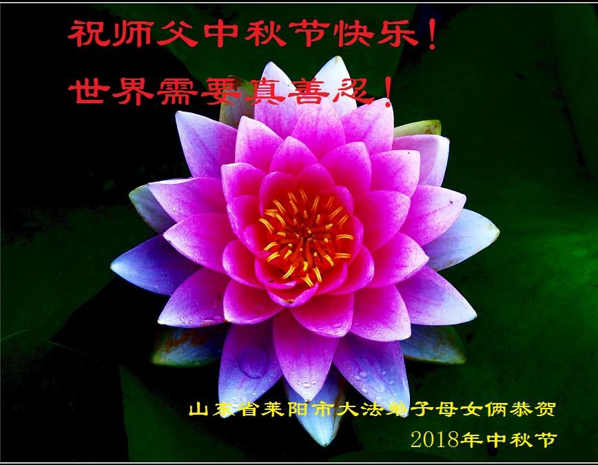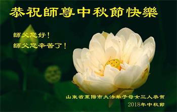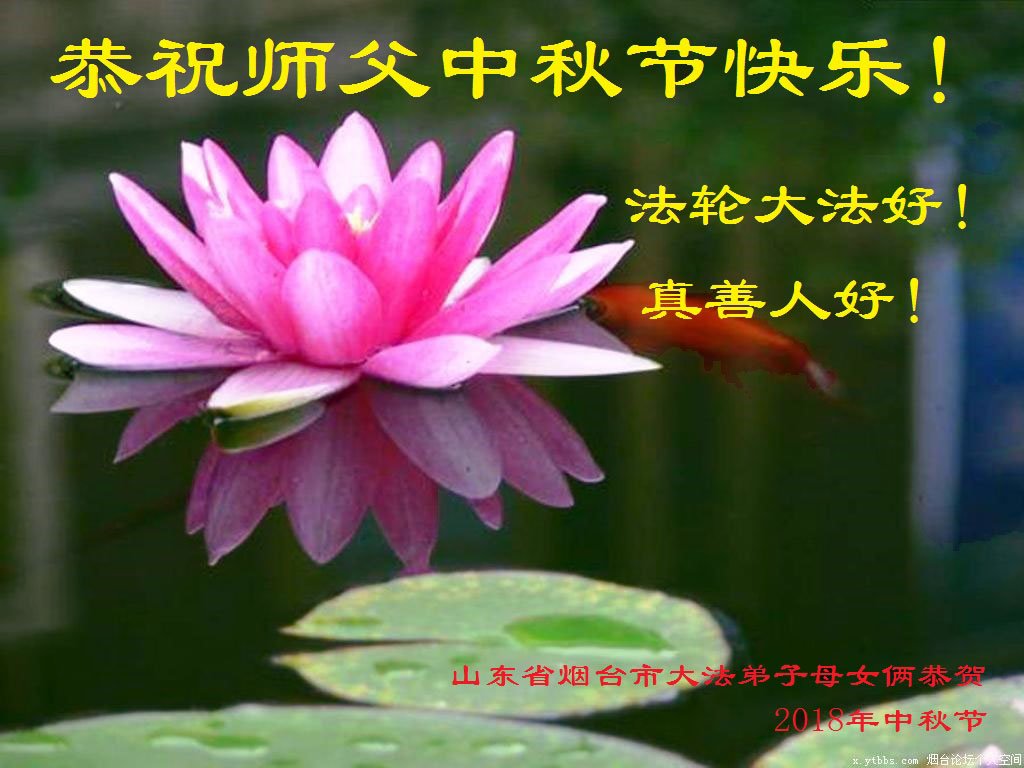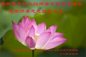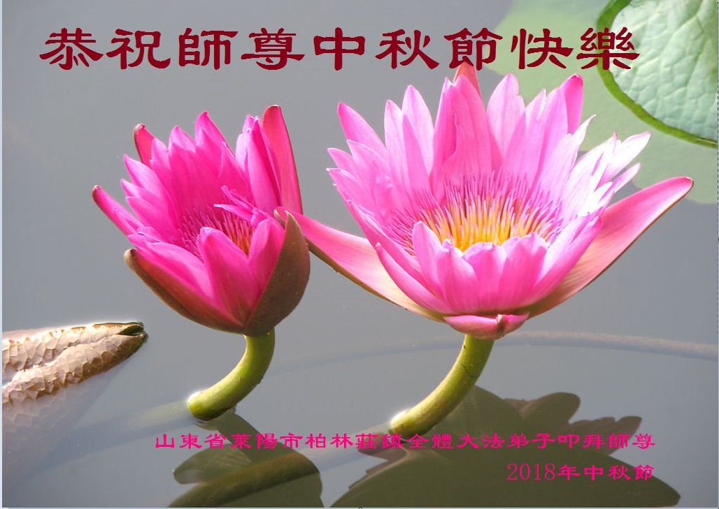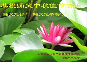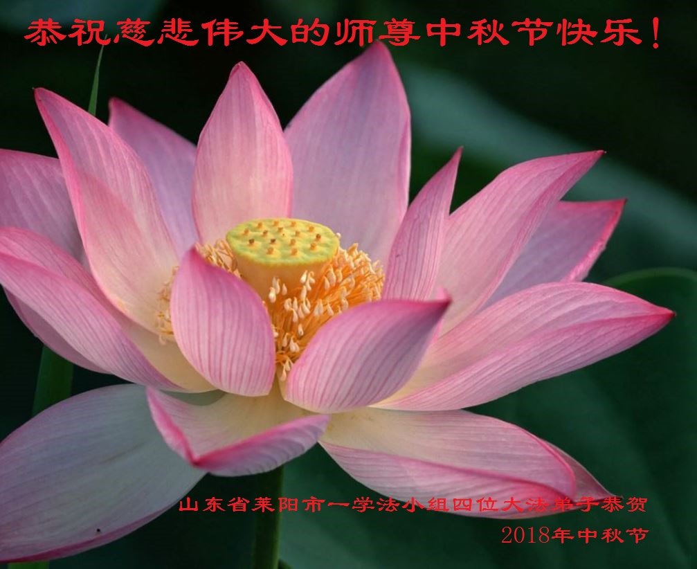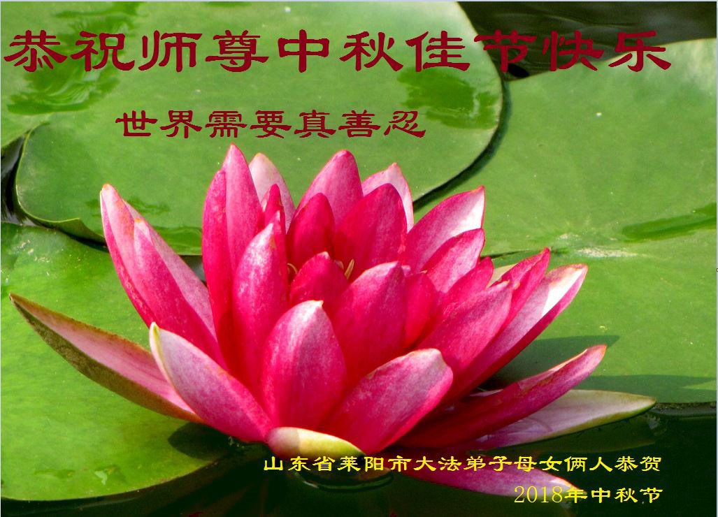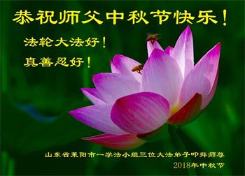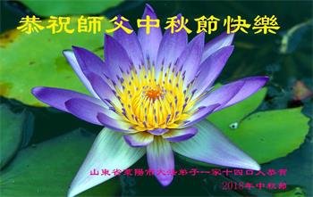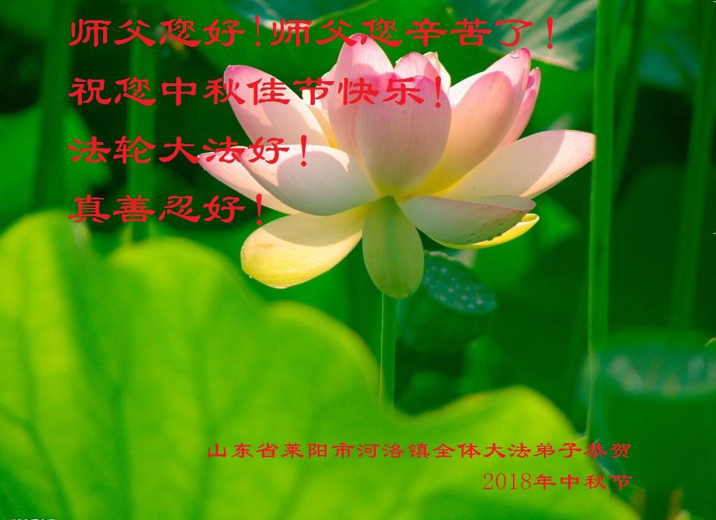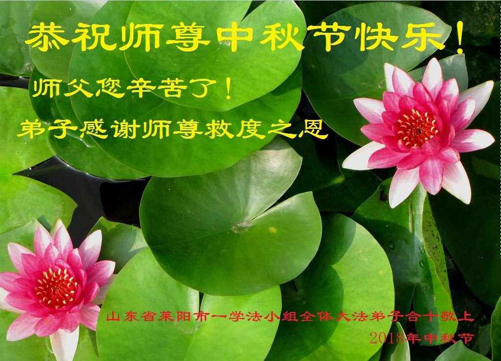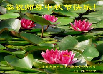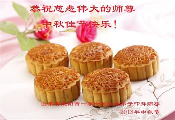 值此二零一八年中秋佳节到来之际,山东省烟台市莱阳市三人学法小组的大法弟子向师尊问好!恭祝慈悲伟大的师尊中秋佳节快乐!
