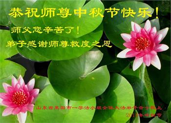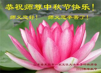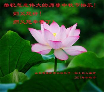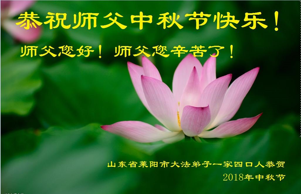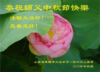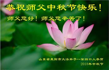 山东省烟台市莱阳市一家五位大法弟子代表全家八口人衷心恭祝慈悲伟大的师尊中秋佳节快乐!