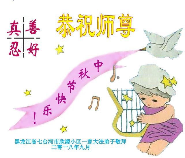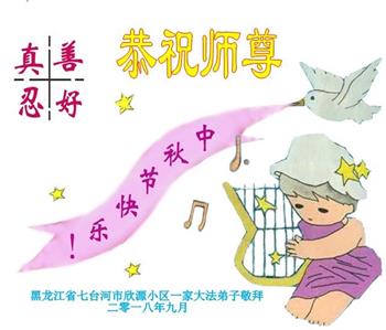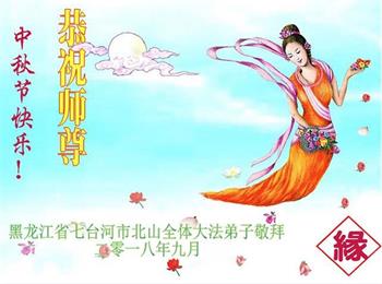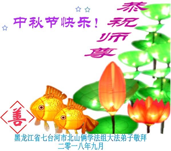 黑龙江省七台河市欣源小区一家大法弟子恭祝师尊中秋节快乐!