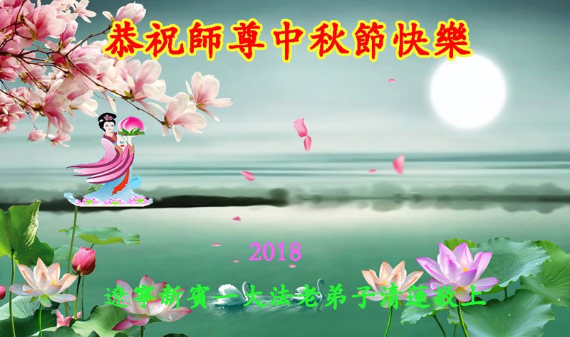师父您辛苦了!作为您的弟子,深知肩负着救众生的历史责任,必须做好。我们会珍惜这助师正法的最后时刻,努力学好法,严格用大法归正自己,修好自己,完成好救人的使命,跟师父回家。青莲学法小组弟子跪拜! 四川遂宁市一资料点大法弟子恭祝慈悲伟大的师父中秋快乐!
