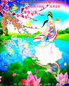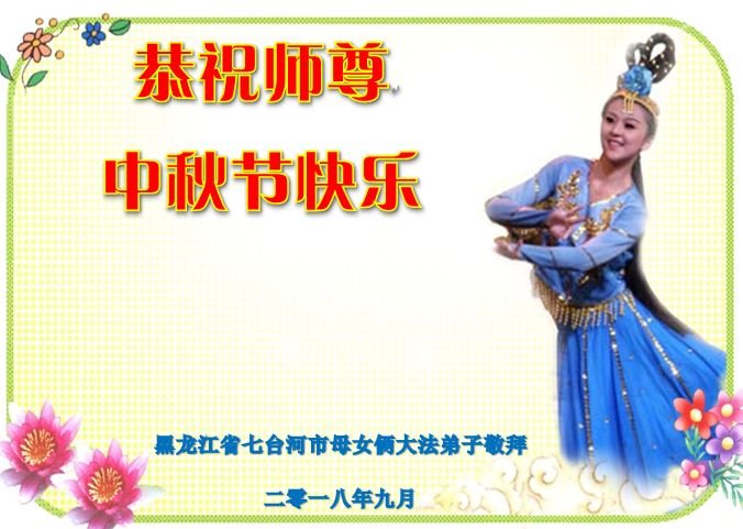 弟子叩谢师恩!谢谢师父慈悲苦度!弟子一定努力精進实修。 黑龙江省七台河市七星花园姐妹大法弟子恭祝师尊中秋节快乐!