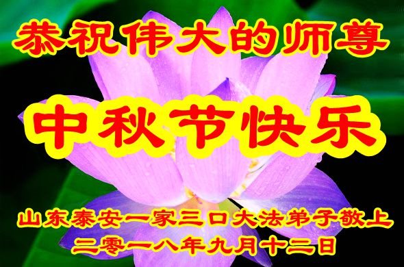 弟子唯有紧跟师父的正法進程,放下自我,实修自己,做好三件事,助师正法多救人。感恩师尊的救度之恩!弟子叩谢师恩! 山东泰安一家三口大法弟子及一学法小组大法弟子恭祝伟大的师尊中秋节快乐!