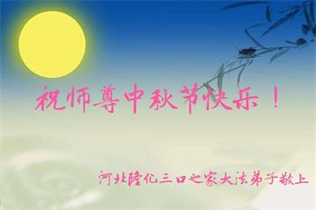 大陆一家三位大法弟子恭祝慈悲伟大的师父中秋节快乐!
