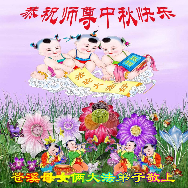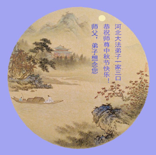 每逢佳节倍思亲!祝师尊中秋快乐!弟子们想念您!我们抓紧时间做好三件事,愿师尊早日回大陆与弟子团聚,我们与您一起回家。跪拜师尊! 四川省广元市旺苍县嘉川镇大法弟子恭祝师父中秋节快乐!