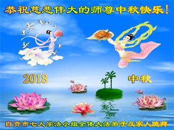 我们母女俩大法弟子及全家恭祝慈悲伟大的师尊中秋节快乐!师尊辛苦了!师尊用巨大的付出、巨大的承受,时刻呵护着我们。我们唯有共同精進、共同提高,比学比修,遇事向内找,不管出现什么样的形势变化,我们都不会懈怠,还是努力做好三件事,救度更多的众生。我们会听师尊的话,多学法、学好法,修好自己,兑现誓约,真正的助师正法。跪拜!合十 四川省自贡七人学法小组全体大法弟子恭祝慈悲伟大的师尊中秋节快乐!