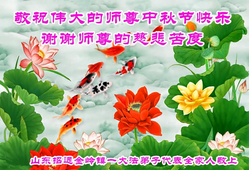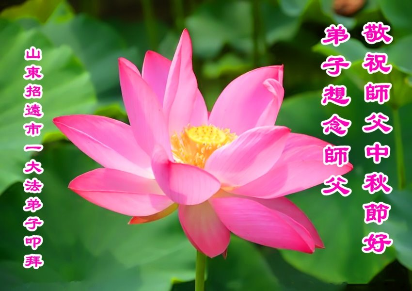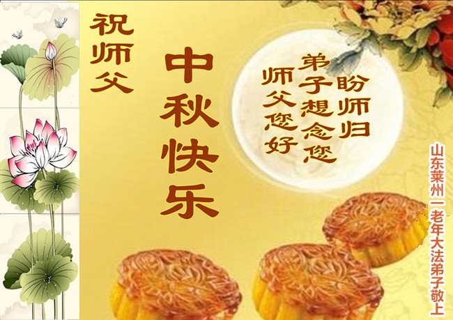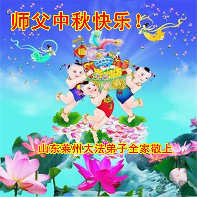 恭祝慈悲伟大的师尊中秋节快乐!请师父放心,我们会一如既往继续做好三件事,不辜负师父的慈悲救度! 山东威海市一学法小组 山东省泰安市宁阳县全体大法弟子恭祝师尊中秋节快乐!