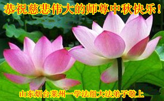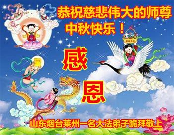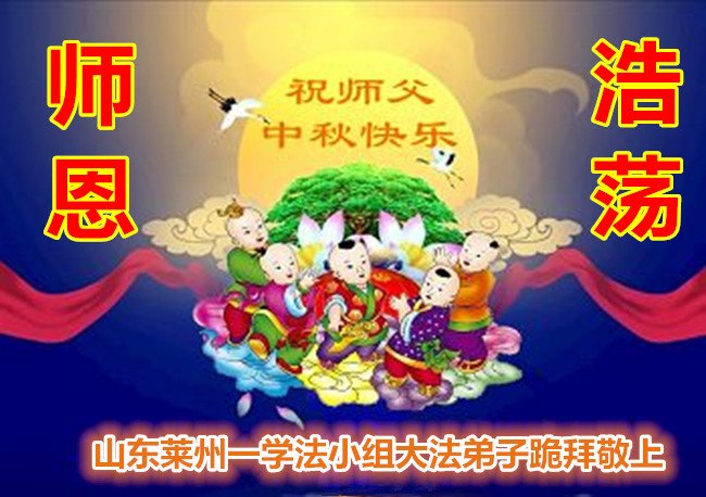 山东烟台莱州一名大法弟子恭祝慈悲伟大的师尊中秋快乐! 山东烟台莱州一学法小组大法弟子恭祝慈悲伟大的师尊中秋快乐!