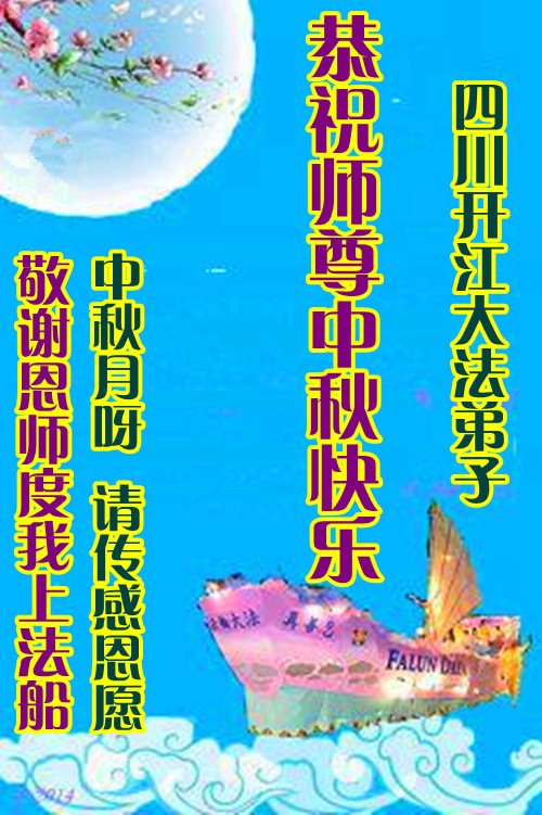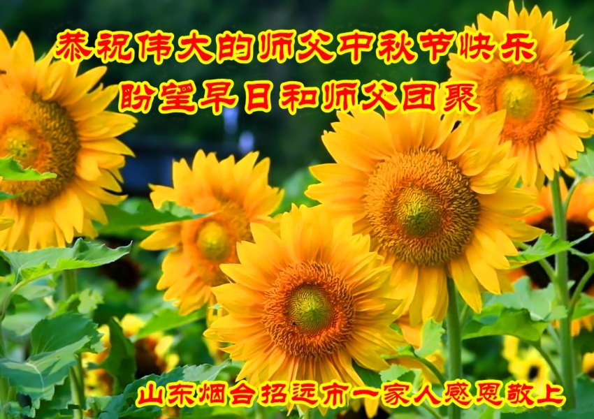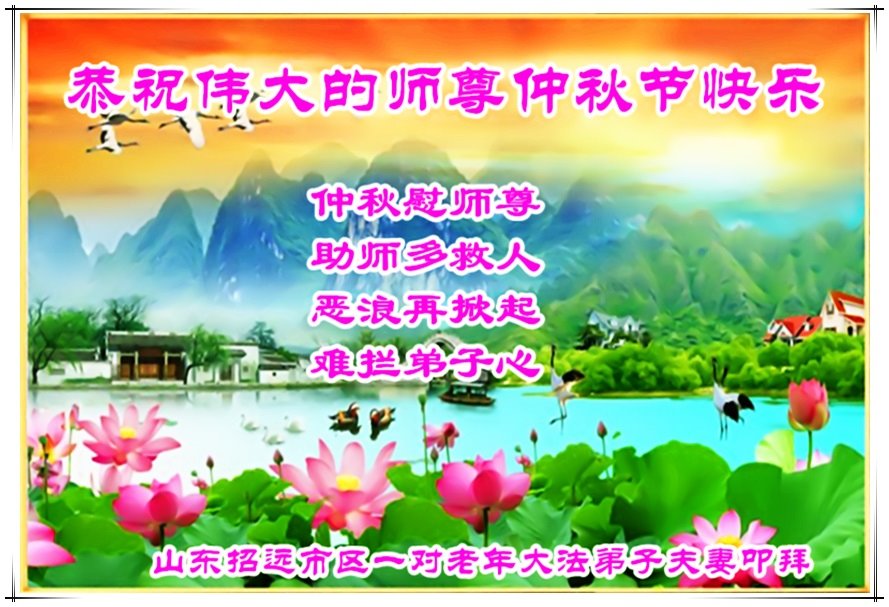 中秋慰师尊 助师多救人 恶浪再掀起 难拦弟子心 山东烟台招远市金岭镇一大法弟子代表全家人敬祝伟大的师尊中秋节快乐!