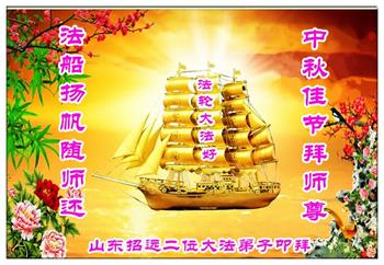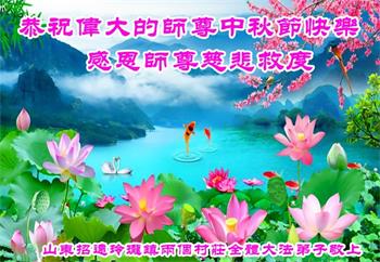 中秋佳节拜师尊 法船扬帆随师还 恭祝伟大的师尊中秋节快乐! 山东省烟台市招远市玲珑镇两个村庄全体大法弟子恭祝伟大的师尊中秋节快乐!