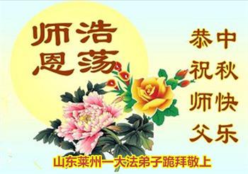 山东烟台莱州一学法小组大法弟子恭祝慈悲伟大的师尊中秋快乐! 山东烟台莱州一名大法弟子恭祝慈悲伟大的师尊中秋快乐!