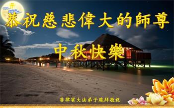 菲律宾马尼拉大都市大法弟子恭祝师尊中秋快乐!弟子想念师尊,一定做好三件事,助师正法。 沙特阿拉伯一大法弟子恭祝伟大的师尊中秋快乐!