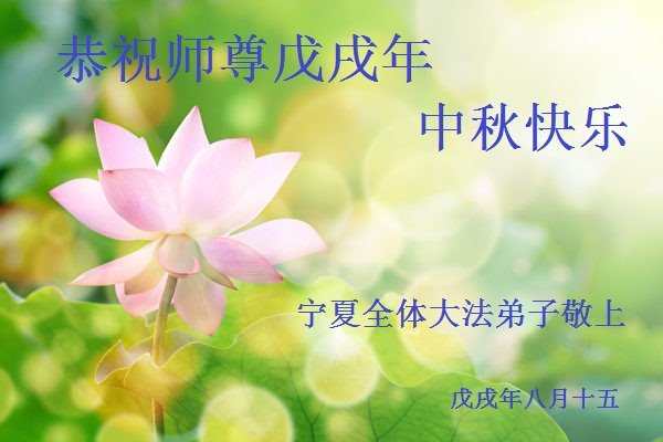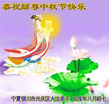 【明慧网二零一八年九月二十四日】 宁夏全体大法弟子感谢师父的救度之恩,祝慈悲伟大的师父中秋节快乐!