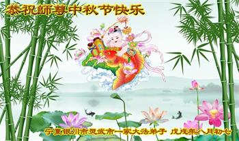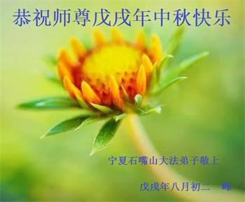 感恩师尊传大法,感恩大法救天下;信师敬法多救人,紧跟师尊全回家。 宁夏石嘴山市大武口区大法弟子恭祝师尊中秋节快乐!