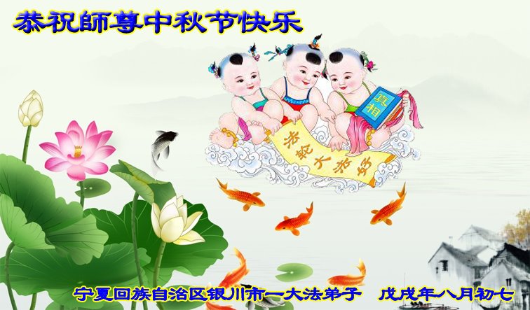 感恩师父,感恩大法,伟大的佛法,佛恩浩荡,是人类的语言难以表达的;师父您辛苦了,弟子想念您,弟子要更加努力的做好三件事,信师信法,听师父的话,向内找,在法中归正自己,做合格的大法弟子。弟子跪拜师父。 宁夏银川市一大法弟子恭祝师父中秋节快乐!