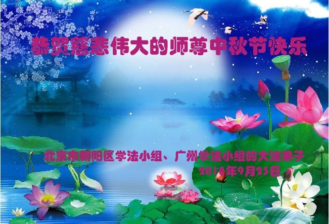 北京市朝阳区三个学法小组、广州学法小组的大法弟子恭祝慈悲伟大的师尊中秋快乐! 2018年9月23日 广东省广州大法弟子恭祝师尊中秋节快乐!