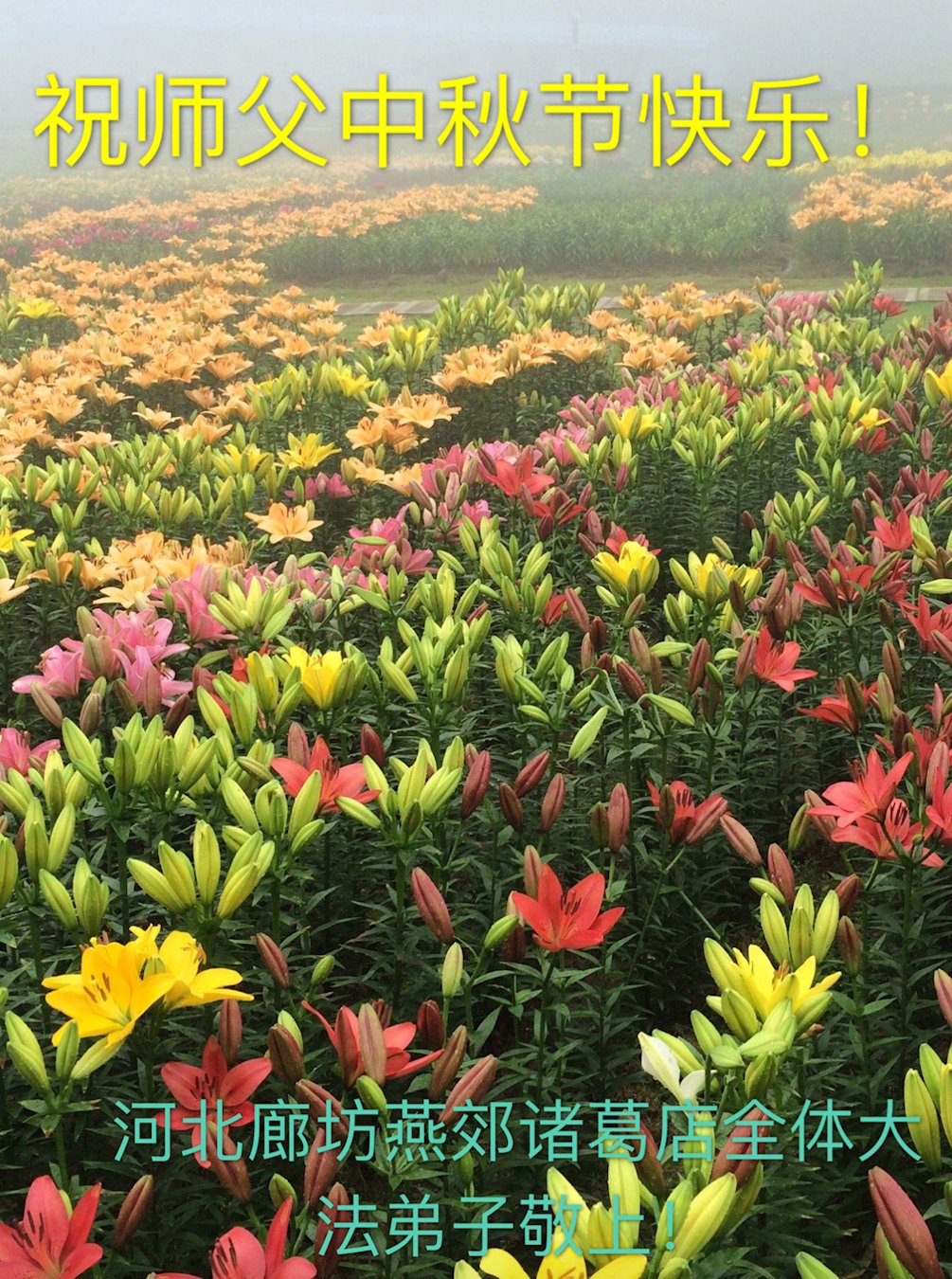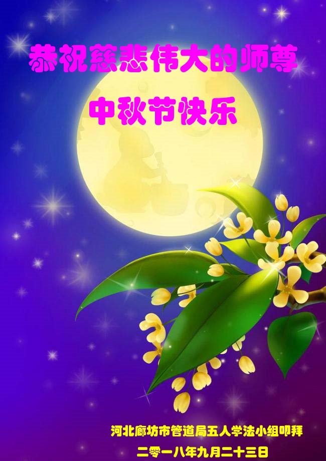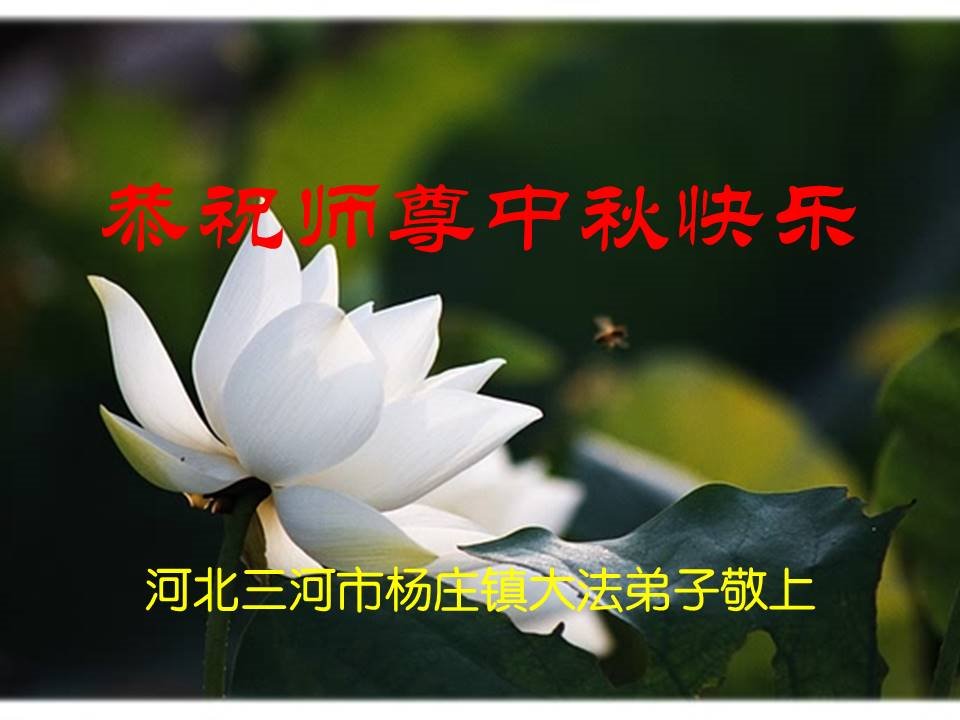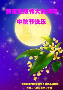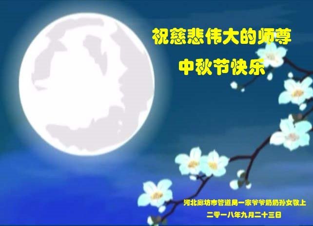 【明慧网二零一八年九月二十四日】 河北省廊坊市三河市杨庄镇大法弟子恭祝师尊中秋快乐!