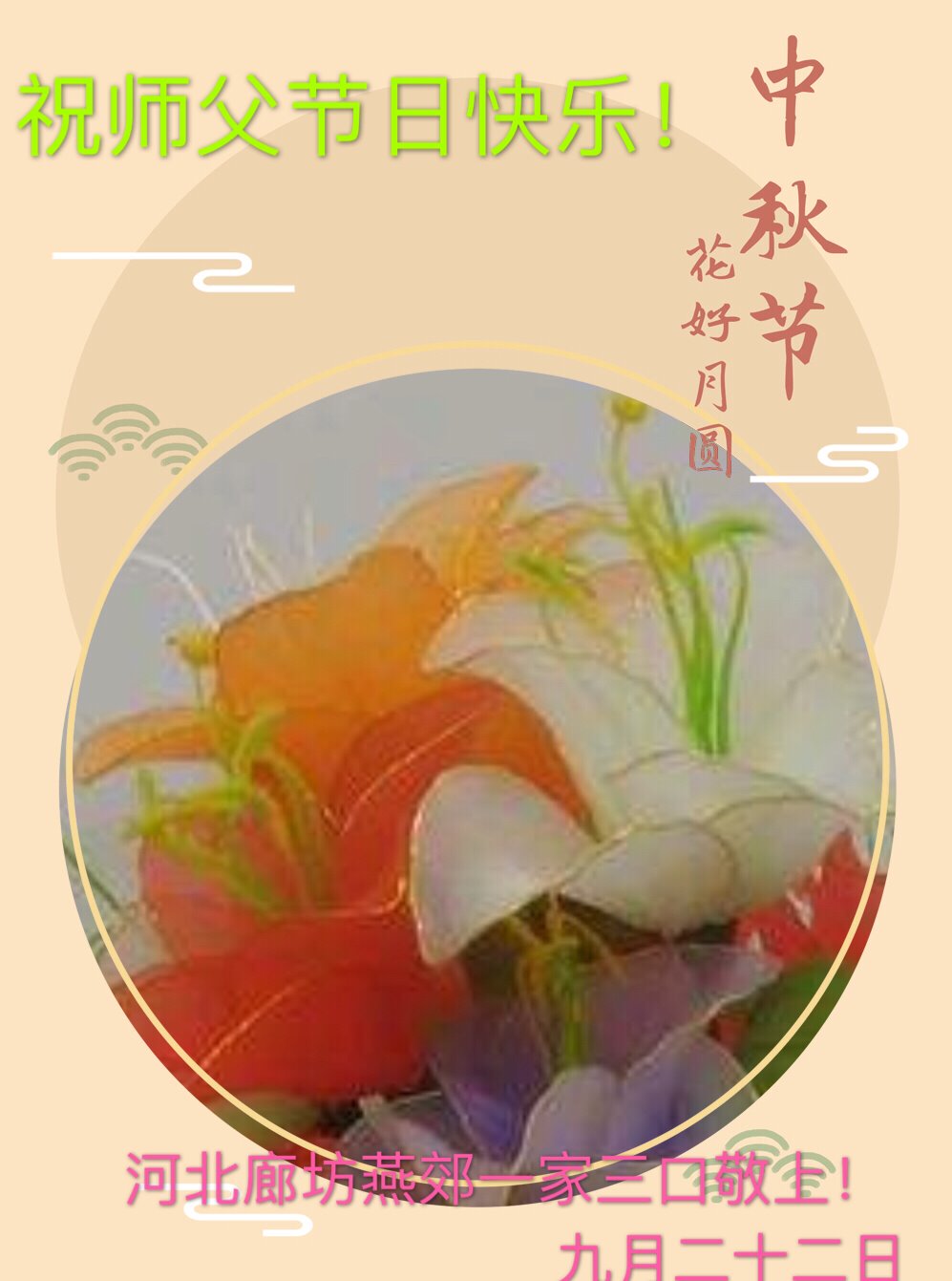 河北廊坊燕郊一家三口恭祝师父中秋节快乐!