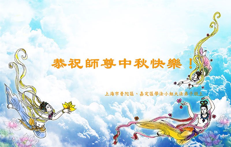 上海大法弟子想念您!在最后的日子里我们一定更好地做好三件事,完成史前的誓约。让师尊少操一份心! 上海四人学法小组的大法弟子叩拜 上海松江区大法弟子恭祝慈悲伟大的师尊中秋节快乐!