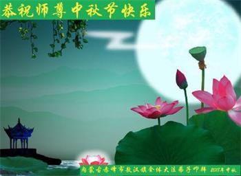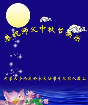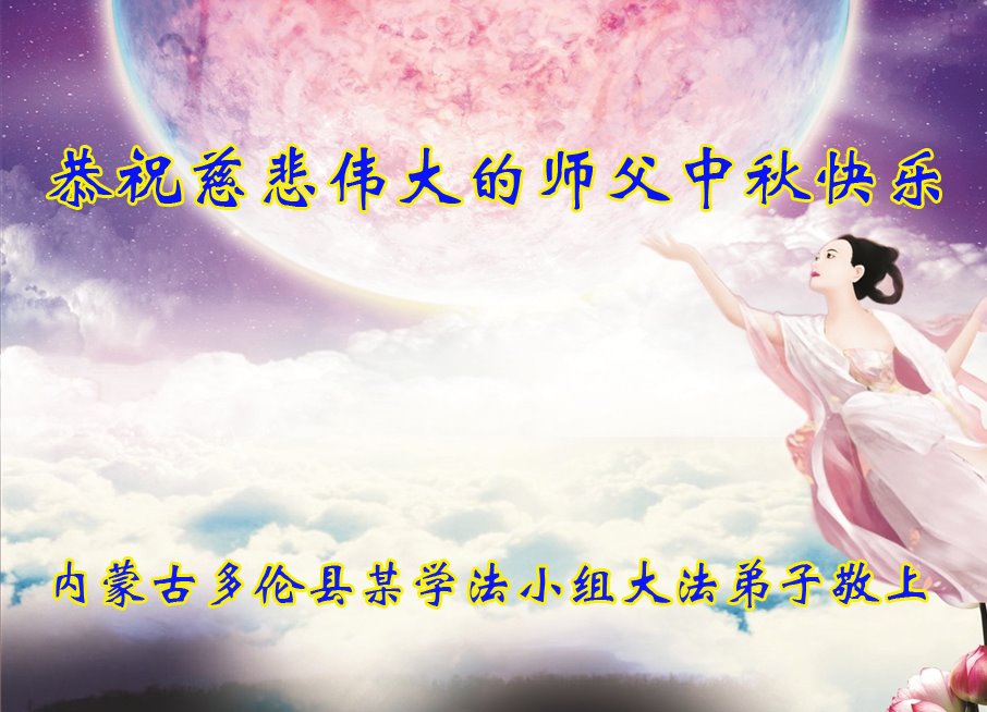 弟子叩拜!师父,学法小组大法弟子恭祝您中秋节快乐!学法小组是一个熔炼人的环境,大法弟子在这个环境中,向内找,比学比修,共同精進共同提高,在师尊的慈悲保护下救度众生。弟子们希望能少留下一些遗憾,希望不辜负师尊的慈悲普度。内蒙古多伦县某学法小组大法弟子敬上! 内蒙古自治区锡林郭勒盟多伦县全家大法弟子及家人恭祝师父中秋节快乐!