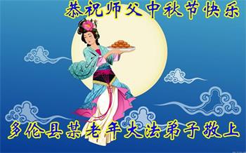 师父,弟子修炼二十四年,风风雨雨走到今天,感恩师尊的加持和慈悲保护,在中秋来临之际,恭祝慈悲伟大的师父中秋节快乐!千言万语道不尽对师父的感恩,弟子叩拜师尊! 内蒙古多伦县某老年大法弟子敬上! 内蒙古自治区锡林郭勒盟多伦县某学法小组大法弟子恭祝师父中秋节快乐!