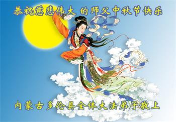 内蒙古多伦县全体大法弟子在中秋节来临之际,恭祝慈悲伟大的师父中秋节快乐!中秋佳节,弟子们想念您,风风雨雨二十载,磕磕绊绊走到今天,千言万语、万语千言也道不尽对师尊的感恩和慈悲保护!师父,您辛苦了!师父,谢谢您! 内蒙古赤峰市元宝山大法弟子恭祝师尊中秋快乐!