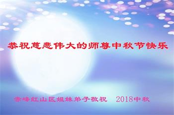 内蒙古赤峰市红山区姐妹大法弟子恭祝伟大的师尊2018年中秋节快乐! 感谢师尊的无量救度之恩! 同时寄去弟子对师尊的思念! 盼望师尊早日归来! 内蒙古赤峰翁牛特旗某学法小组全体大法弟子向慈悲伟大的师尊问好!祝师尊中秋快乐!