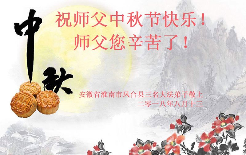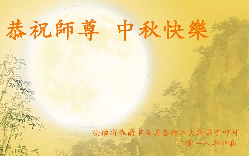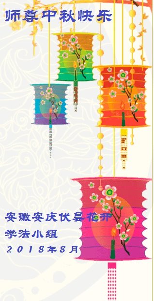 恭祝师尊中秋快乐! 弟子真心感谢恩师洪大的慈悲苦度。 安徽合肥一学法小组七名大法弟子 合十敬祝 戊戌年中秋 安徽省合肥一大法弟子恭祝师父中秋节快乐!