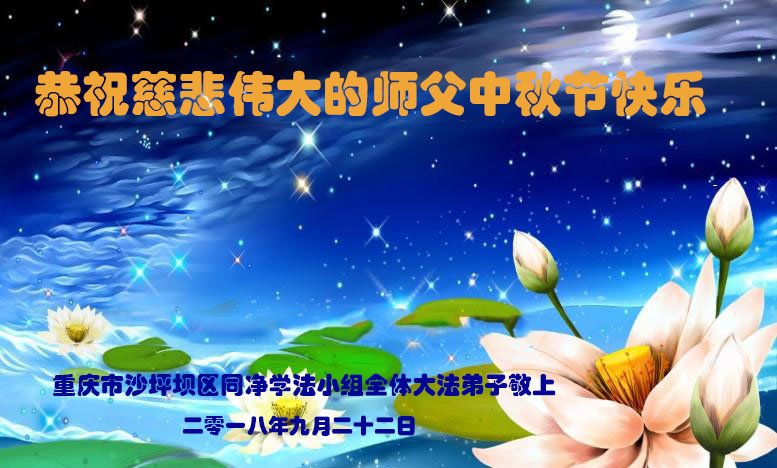 【明慧网二零一八年九月二十四日】 重庆市九龙坡区一学法小组弟子及家人敬贺师尊中秋快乐!