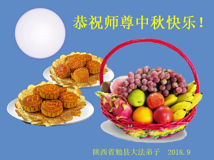 【明慧网二零一八年九月二十四日】 陕西礼泉农村大法弟子恭祝师尊中秋快乐!