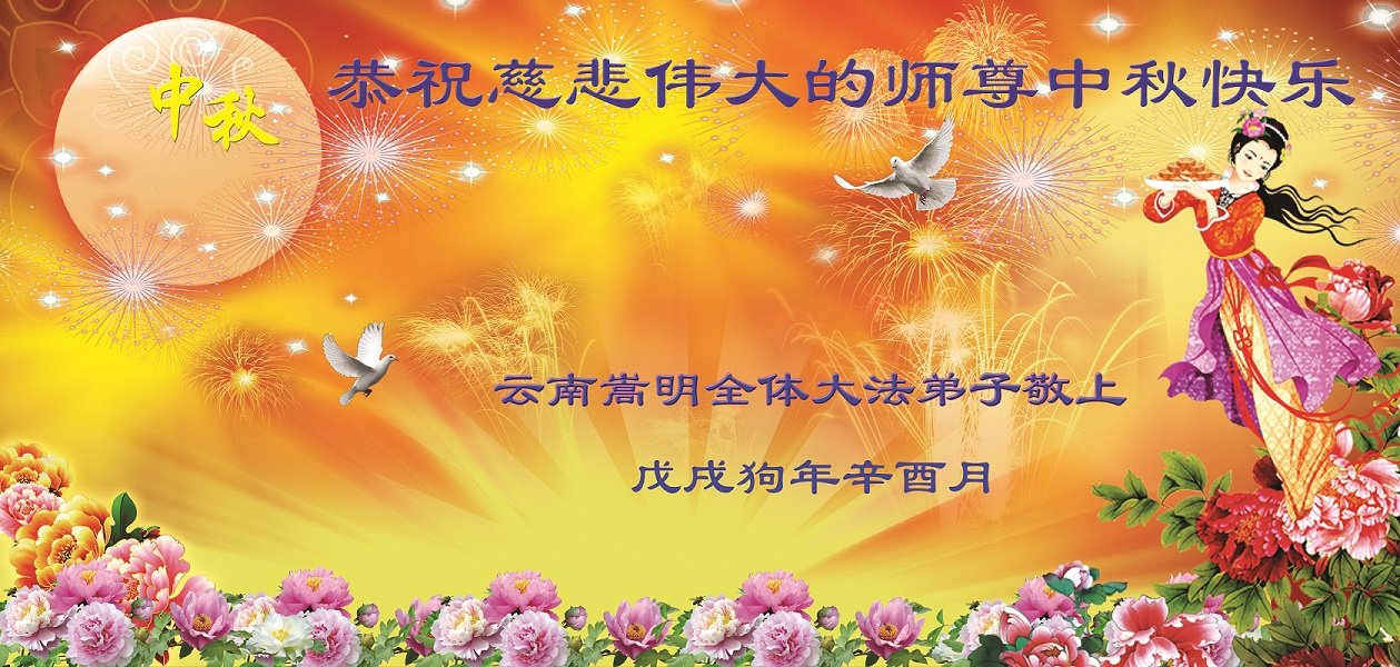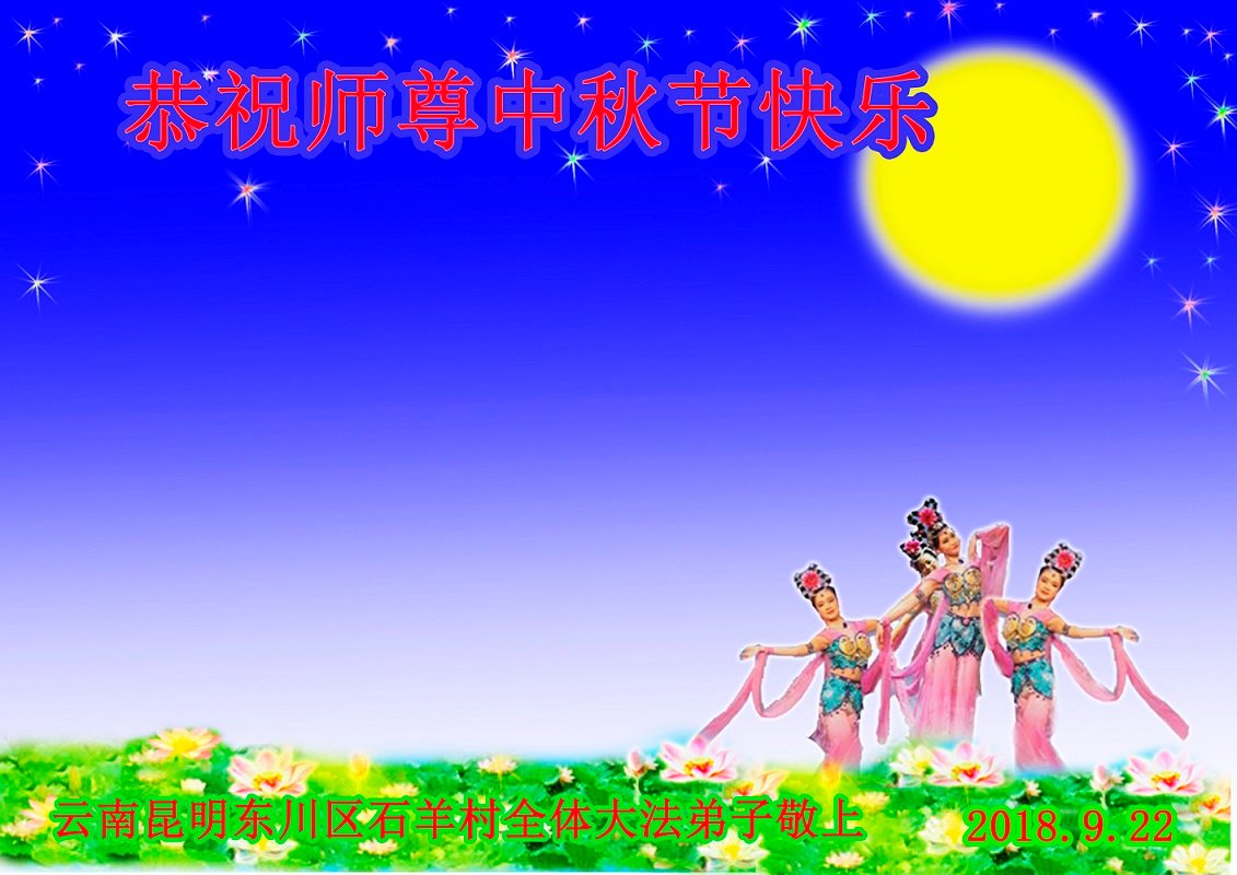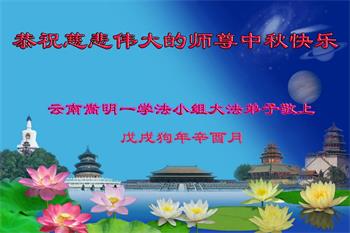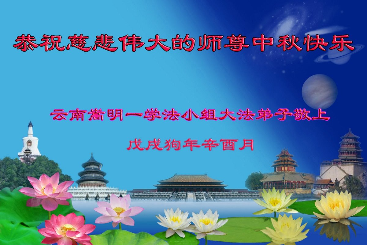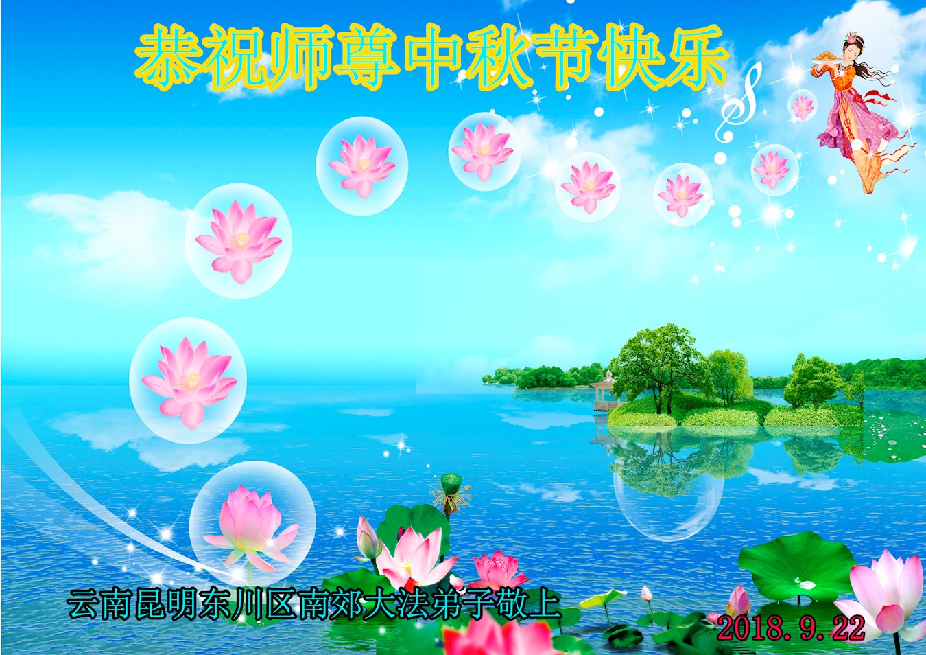【明慧网二零一八年九月二十四日】 云南昆明大法弟子恭祝师父中秋节快乐!