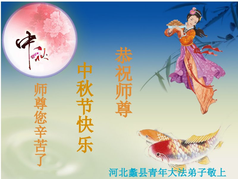 河北涿州大法弟子恭祝师尊中秋节快乐!感谢师尊慈悲救度,师尊辛苦了,叩拜师尊 河北保定蠡县一青年大法弟子恭祝师尊中秋节快乐!