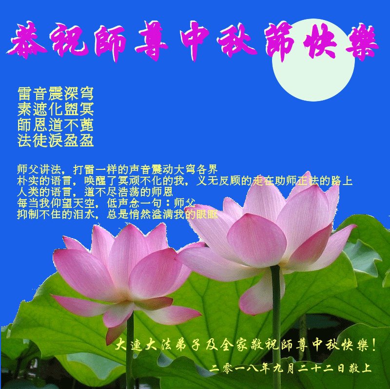 感谢师尊慈悲救度,弟子在这里跪谢师恩。 2018年9月23日 辽宁省大连大法弟子恭祝师尊中秋快乐!