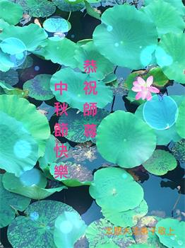 中秋节到了,感谢师父慈悲救度,也祝师父中秋节快乐!同时向师父保证在剩下的时间里一定要多学法,好好修自己!难行能行,难忍能忍!真诚待人,消除自己与同修间的隔阂疑忌,理智慈悲处处为他人着想,尽力做好三件事,团结带动本地同修共同精進,抓紧救人,截窒世下流!也希望自己能够对得起“大法弟子”的称号! 山西省晋中市榆次区坚守信仰的大法弟子恭祝慈悲伟大的师尊中秋节快乐!