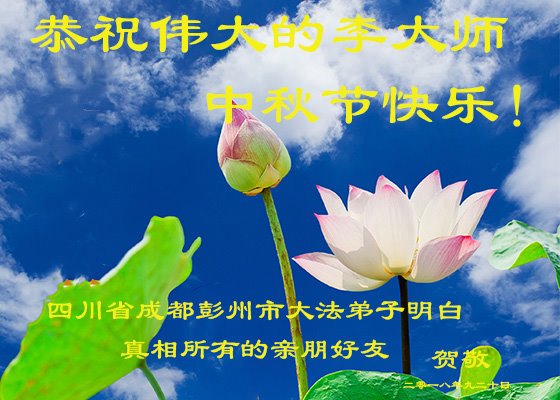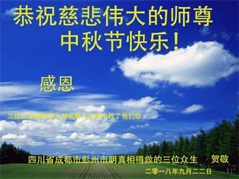 四川省成都彭州市大法弟子及所有明白真相的亲朋好友恭祝伟大的李大师中秋快乐!