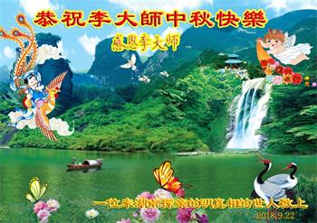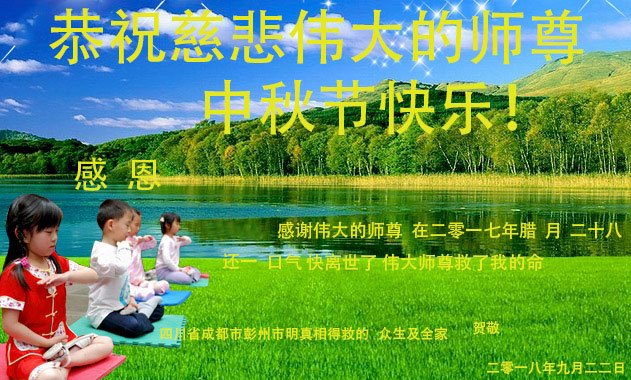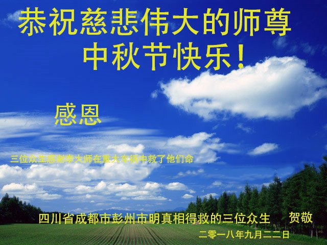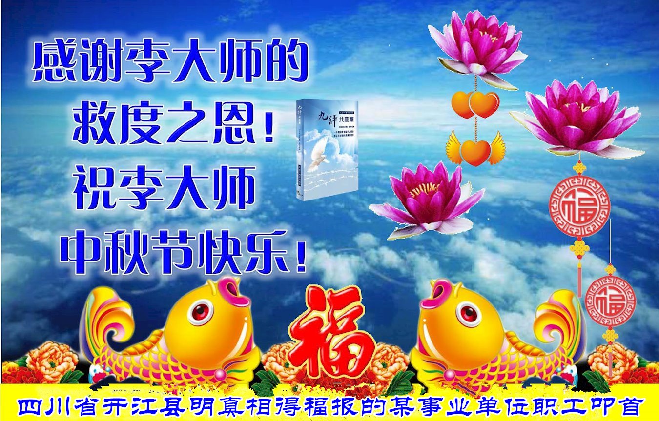 【明慧网二零一八年九月二十四日】 四川省达州市开江县明真相得福报的某事业单位职工恭祝李大师中秋快乐!