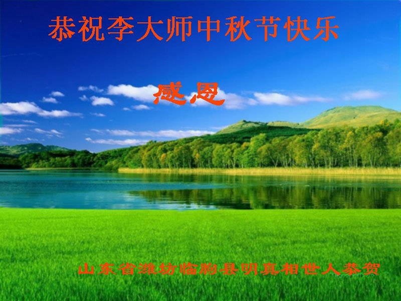 谢谢师父的大法弟子送给家乡百姓真相,现在明白真相的民众越来越多,大家都私下谈论天灭中共的时日真的快要到了,高兴啊!《共产主义的终极目的》这部书让人民清醒了,共产主义欲毁灭全人类有多么邪恶。谢谢师父救度众生,谢谢您,师父! 山东省潍坊市临朐县全体明真相世人恭祝李大师中秋节快乐!