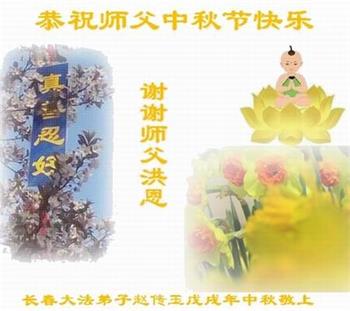 恭祝师父中秋节快乐!真善忍好!谢谢师父洪恩! 长春大法弟子 戊戌年中秋敬上 吉林省长春十六名大法弟子恭祝师尊中秋节快乐!
