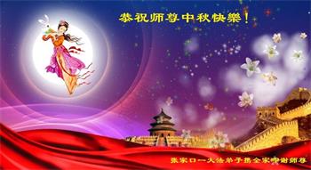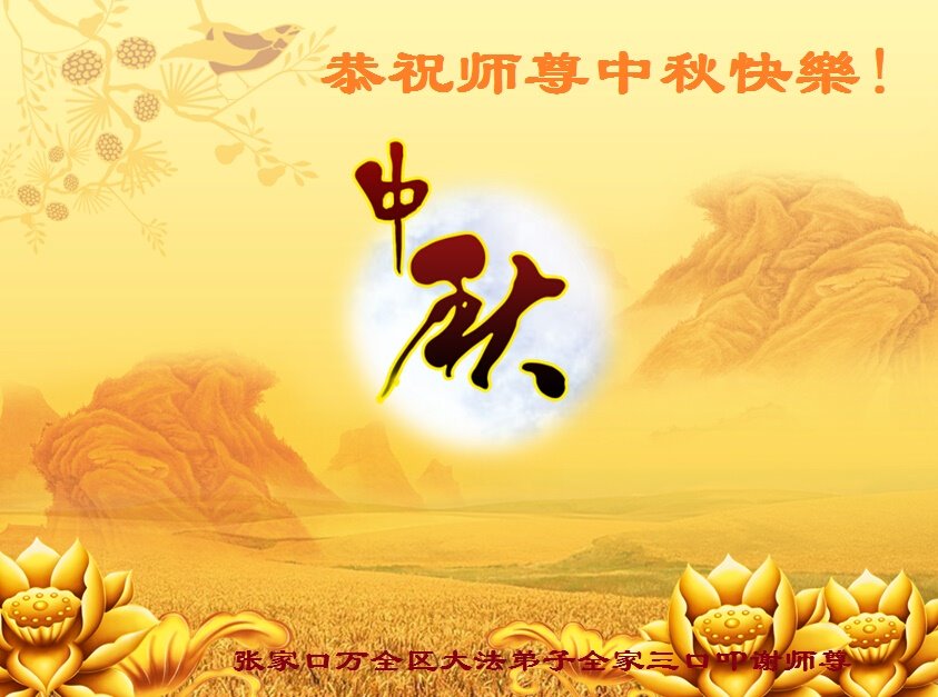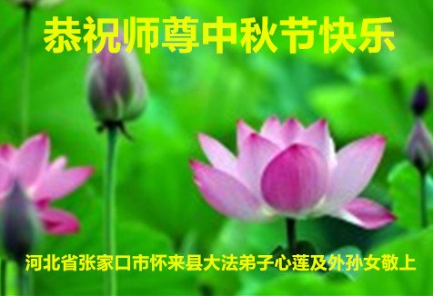 中秋节到了,我们学法小组全体同修祝师尊中秋节快乐!愿我们在实修中更加精進,同化大法!叩拜师尊! 河北省张家口市怀来县大法弟子心莲及外孙女恭祝师尊中秋节快乐!