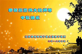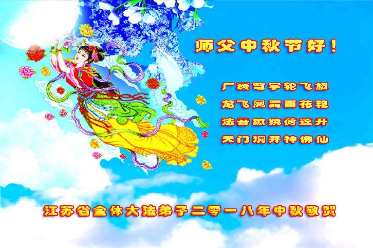 弟子唯有精進,谢师恩!也感谢“明慧网”全体同修,并祝你们中秋节好。 江苏省南京一老年大法弟子恭祝师父中秋节快乐!