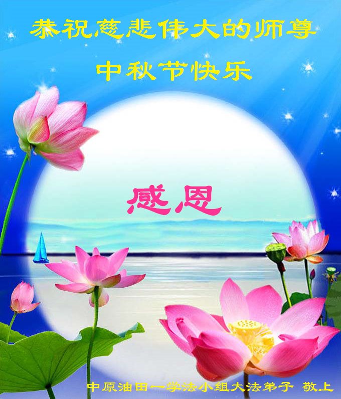 师父辛苦了,谢谢师父! 山东省胜利油田(现河)一学法小组大法弟子恭祝师父中秋节快乐!