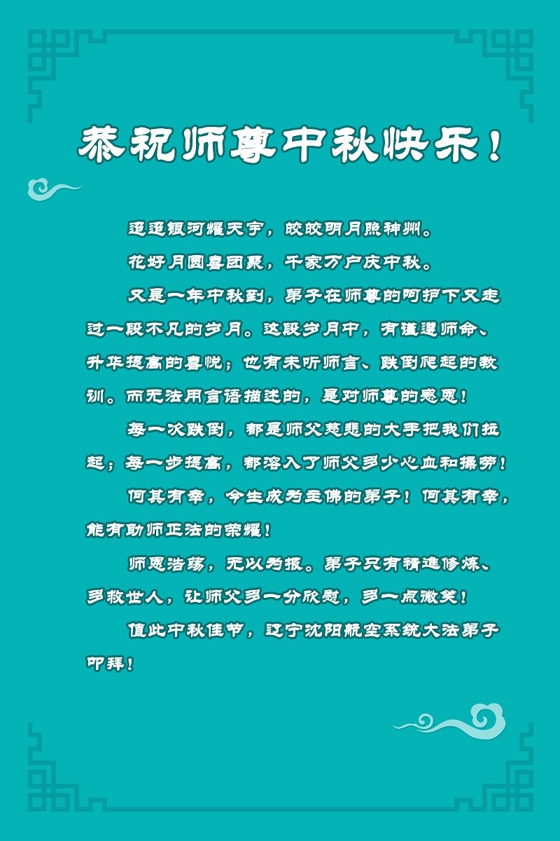 辽宁沈阳航空系统大法弟子恭祝师尊中秋快乐!