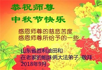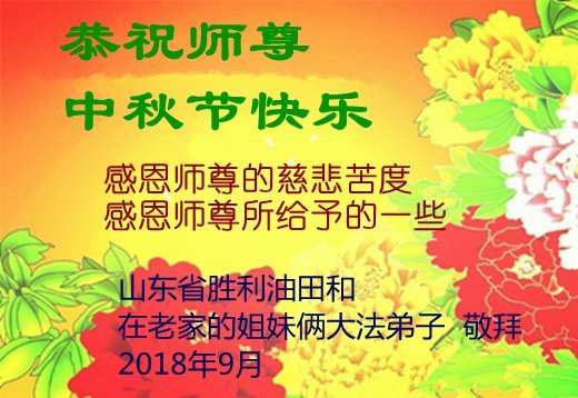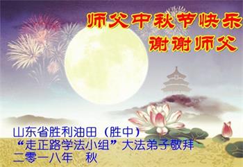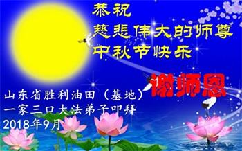 【明慧网二零一八年九月二十四日】 山东省胜利油田(钻井)大法弟子恭祝师尊中秋节快乐!